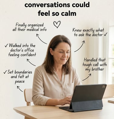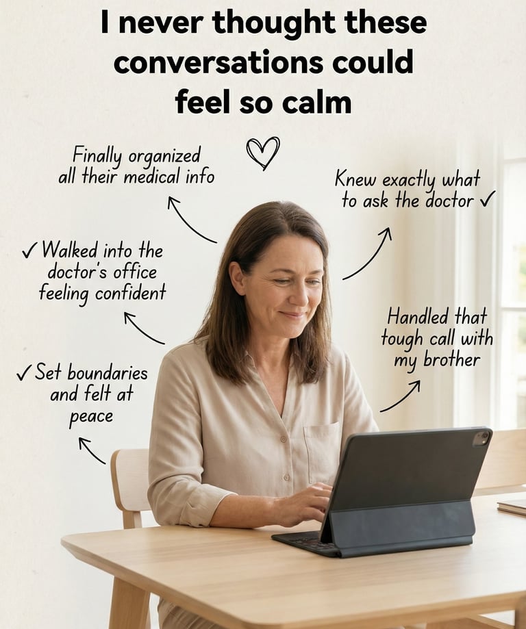 The Conversation Toolkit gives you the exact words when emotions run high—for setting boundaries, coordinating care, and advocating confidently.