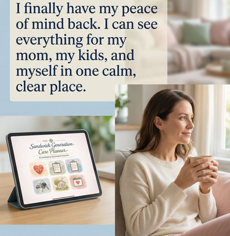 You answer your mother's doctor while your toddler pulls at your sleeve. You research memory care during lunch breaks. You lie awake wondering if you're doing enough for everyone but yourself.